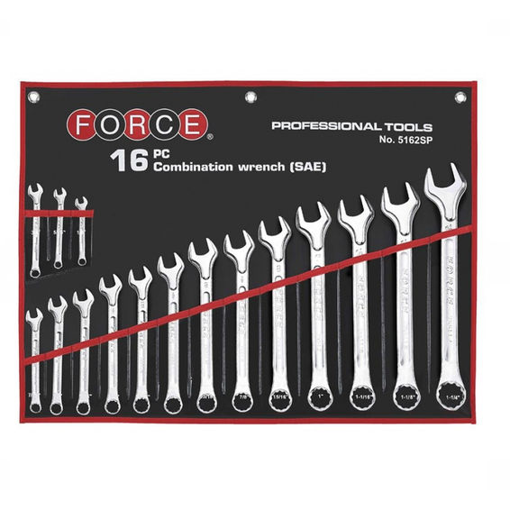 Force - 16 Piece Combination Wrench Set 1/4" To 1 1/4" Pouch Bag