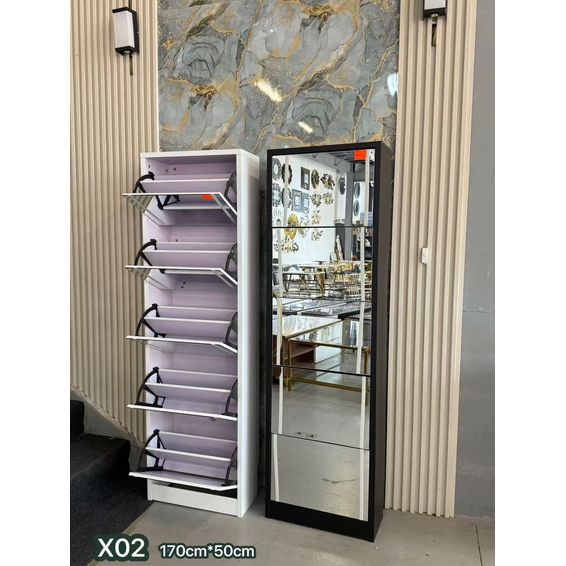 Freestanding Storage Cabinet with Rotating Mirror, Made from Engineered Wood