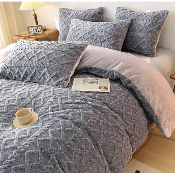 Geometric Sherpa 5 Piece Comforter Set - Grey - Queen/King Size