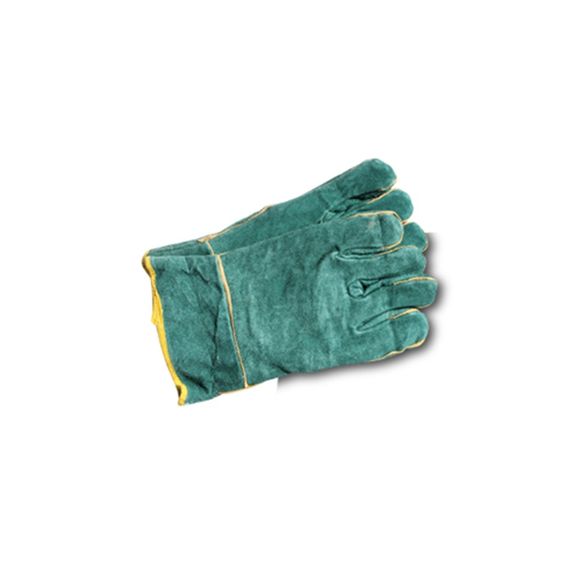 Green leather welding gloves with a 50mm cuff offer essential protection for hands and wrists during welding and heavy-duty tasks. Crafted from durable green-dyed cowhide leather, these gloves are designed to withstand heat, sparks, and abrasions commonly encountered in welding environments.