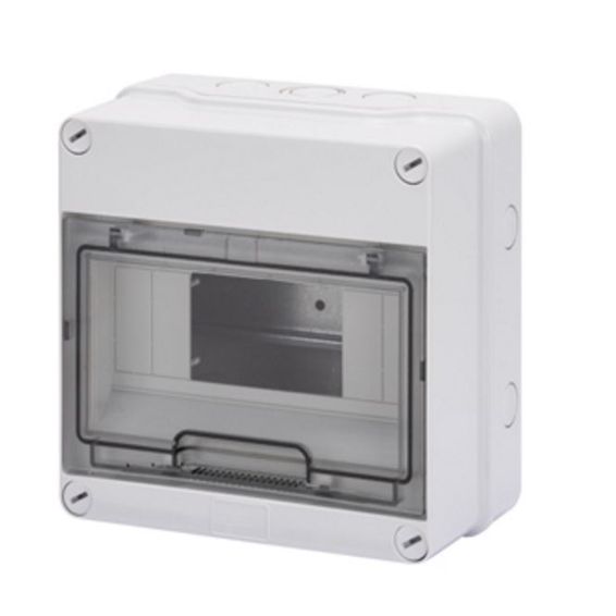 GREY SURFACE DB 1x8M CLEAR DOOR IP55