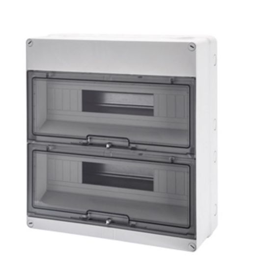 GREY SURFACE DB 2x18M CLEAR DOOR IP55