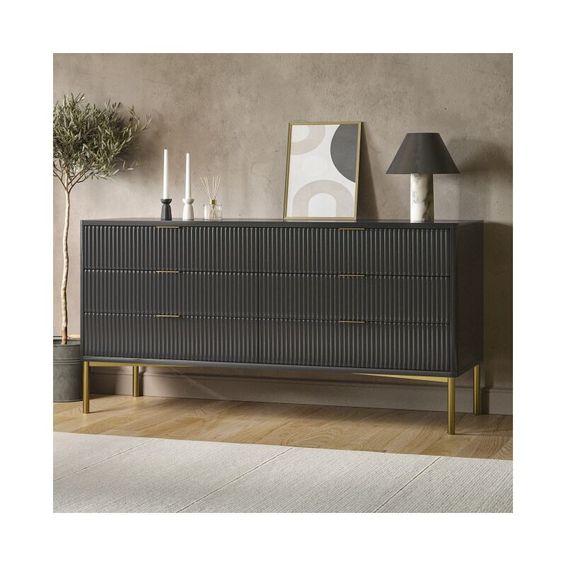Enjoy this beautifully crafted piece of furniture. The Orbit Groove Sideboard by Orbit boosts of neatly presented groove design and golden base. Make your home a beautiful minimalistic modern space.