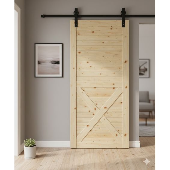 Half X-Brace Barn Door with Hardware Kit (2100mm x 920mm x 36mm)