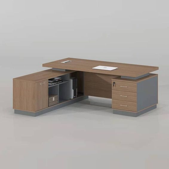 The Harmony Office Desk creates an organized space with plenty of storage. It’s crafted from engineered wood, and its corner shape means it fits into almost any space. The rectangular desktop has space for a computer, lamp, and warm beverage. This Harmony Office Desk gives you lots of storage space for your office essentials: It includes three drawers for writing utensils, notebooks, and cords, while the open shelf below is great for keeping a stack of books on hand.