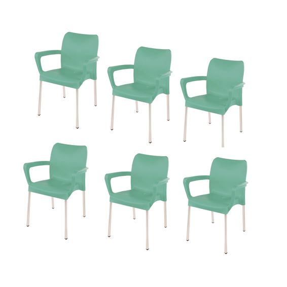 Heavy Duty Plastic Stacking Chair – Bistro Design with Armrests - Laurel Green - Set of 6