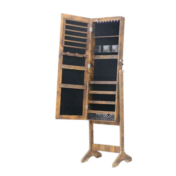 HOMEPOLA Elegant Jewellery Storage Cabinet with Full Length Mirror - Rustic Brown