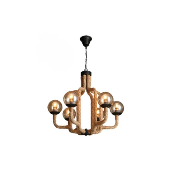 Industrial Rope Pendant Chandelier – 6-Light Hanging Fixture with Glass Shades