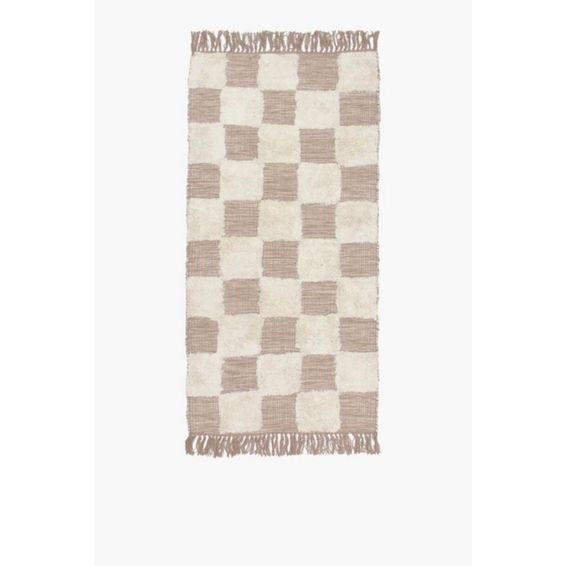 Jacquard Mingle Textured Checkered Rug – 70x140cm Modern Cotton Blend Floor Rug