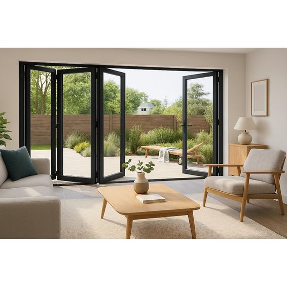 Kenzo - SFD4FG7RC - Aluminium Fold A-Side Door 2.8mx2.1m Charcoal 3 Doors Open Right, 1 Door Open Left Viewed From Outside