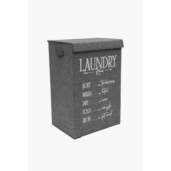 KNOCK DOWN WOVEN SCRIPT LAUNDRY BASKET Foldable Laundry Hamper with Lid & Handles