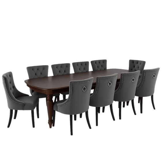 Lacazette Dining Set – Dark Wood Table with 10 Velvet Chairs