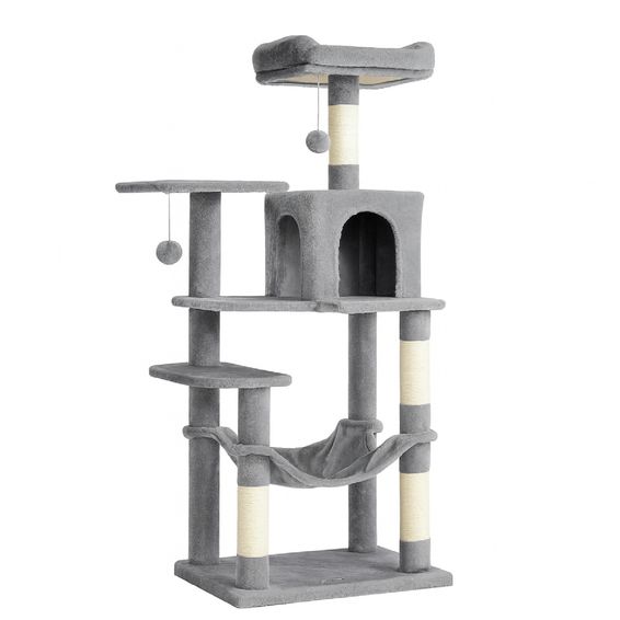 LASA Large Cat Tree Tower with Hammock, Cave & Scratching Posts - Grey