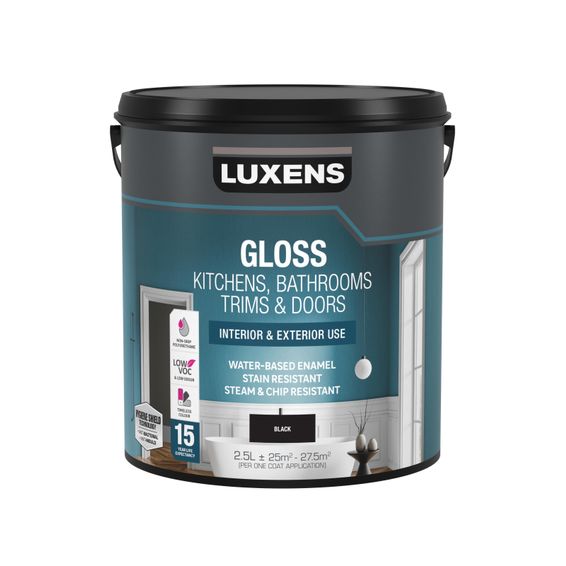 Luxens Kitchen & Bathroom Door & Trim Gloss Black 2.5L