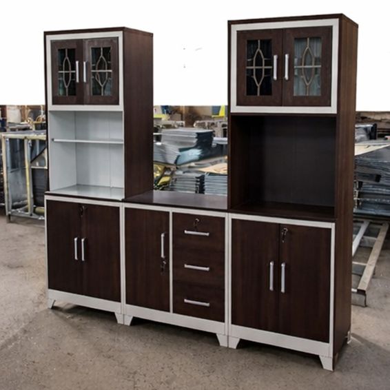 Madiega Furniture - 3-Piece Dark Brown & White Steel Kitchen Pantry Unit with Locks