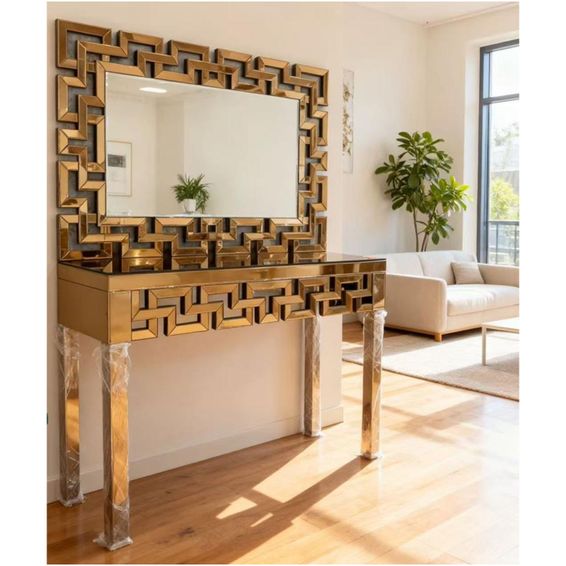 Madiega Furniture - Gold Geometric Console & Mirror Set