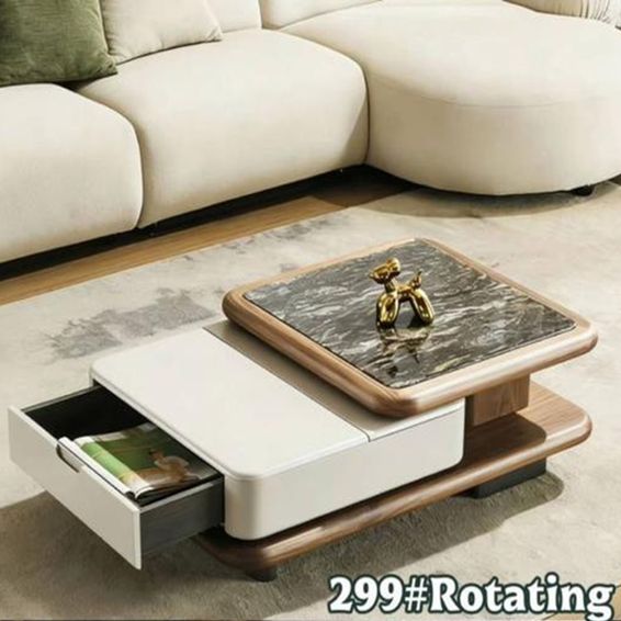 Madiega Furniture - Rotating Marble-Top Storage Coffee Table (Brown & Off-white)