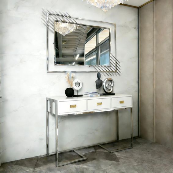 Madiega Furniture - Silver-Frame White Glossy Console & Mirror Set