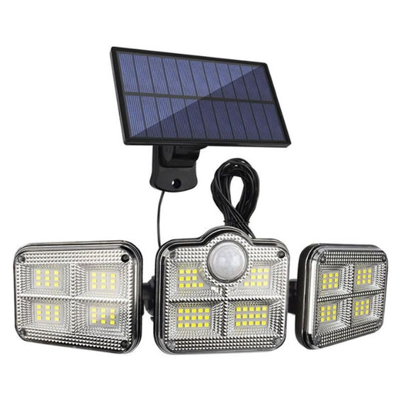 -The light features three rotatable heads that can be adjusted to different angles. This flexibility allows you to direct the light exactly where you need it, making it ideal for lighting up large areas or multiple directions simultaneously. With its three adjustable heads, the light offers a wide coverage area, ensuring that it can illuminate a larger space compared to traditional single-head security lights.
