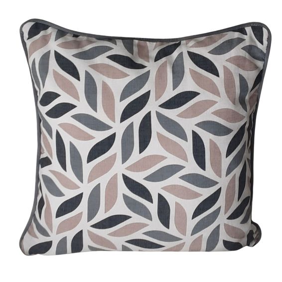 This modern scatter cushion features a bold leaf print on the front in earthy nude, charcoal, and grey tones — paired with a soft light grey velvet back for a luxe, cozy finish. Complete with light grey piping all around, Mahle adds a clean, high-end touch to your home decor.