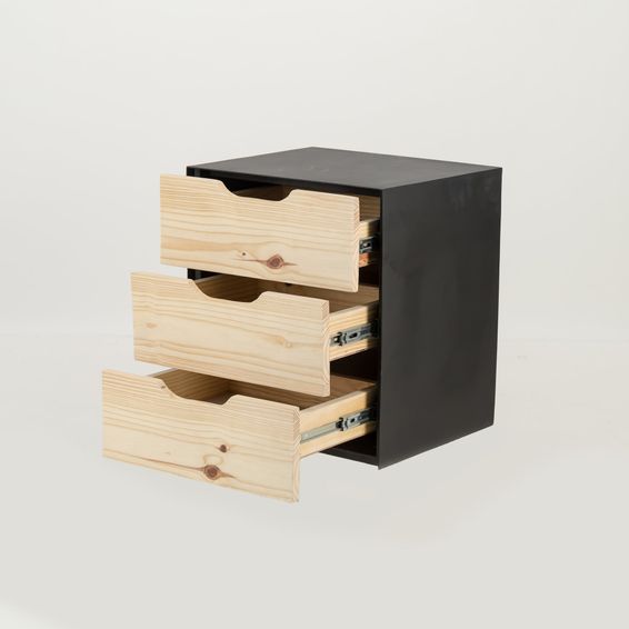 Manaslu Black Floating Side Table Three Drawer - Cut Out Handles