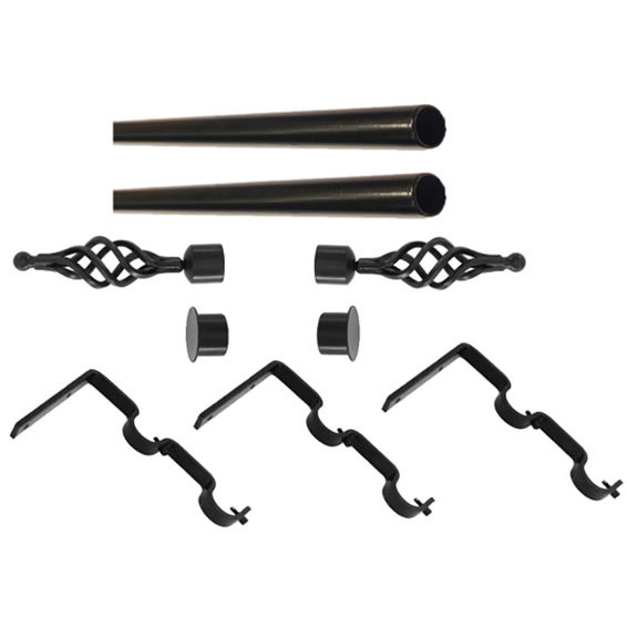 Matoc 32mm Curtain Double Pole Set -Extend Brkts- Metal Big Basket Finials - Black