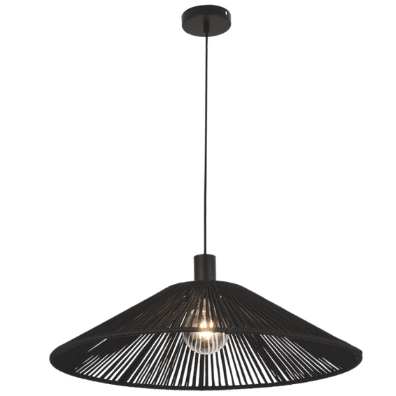 Metal and Nylon Rope Pendant 1 x 40W ES : Black Width: 595mm Height: 150mm Cord: 1300mm Ceiling Cup: 120mm Also Available: PEN948 ROPE