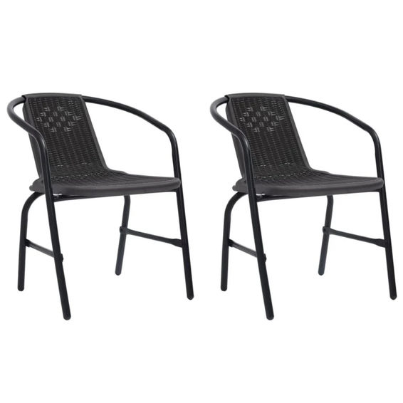 Product Description Item Number: JH-434 Material : Plastic and Metal Size 55*59*72CM Application Outdoor Furniture, Patio, Garden, Deck Product name: Plastic Rattan Chair ColoR: BLACK Application: Garden, Dining Room, Restaurant Chair, And So On
