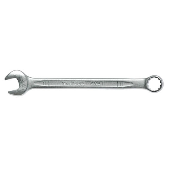 Combination Spanner, Metric, DIN 3113A, Offset 15 degrees, Chrome vanadium. Satin Finish. Same dimension at both ends. The 12 point ring end is set at a 15degree angle.