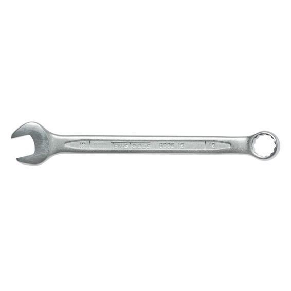 Combination Spanner, Metric, DIN 3113A, Offset 15 degrees, Chrome vanadium. Satin Finish. Same dimension at both ends. The 12 point ring end is set at a 15degree angle.