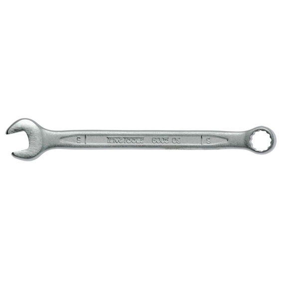Combination Spanner, Metric, DIN 3113A, Offset 15 degrees, Chrome vanadium. Satin Finish. Same dimension at both ends. The 12 point ring end is set at a 15degree angle.