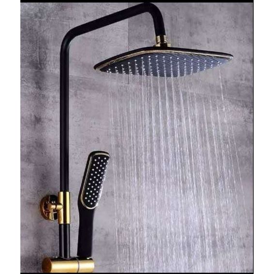 MHome Wall Mounted Bathroom Shower Set Black+Rainfall Shower Head+ Hand Held Spray Tap