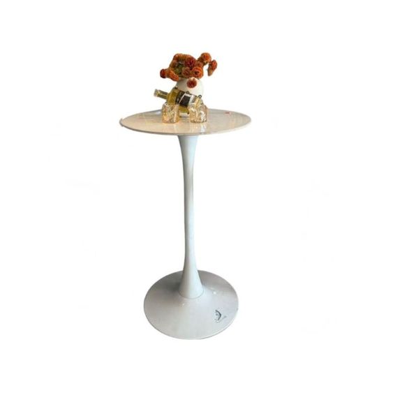 Modern Round Pedestal Side Table, White Metal Base, Accent Display Stand