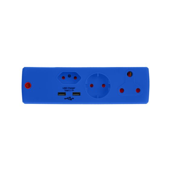 Upgrade your electrical outlets with this versatile multi-plug featuring 1x3-pin, 1x2-pin, 1x Schuko, and 2 USB ports in a sleek blue design. Say goodbye to limited outlets and keep all your devices charged and ready to go!