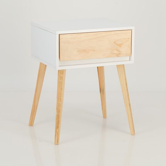 The Nallo Two Drawer Side Table is a minimalist modern design. Finished off with the scandinavian legs and a designer hidden handle drawer front.
