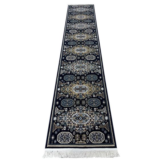 Navy Beige 400 x 80cm Machine Made Turkish Rug