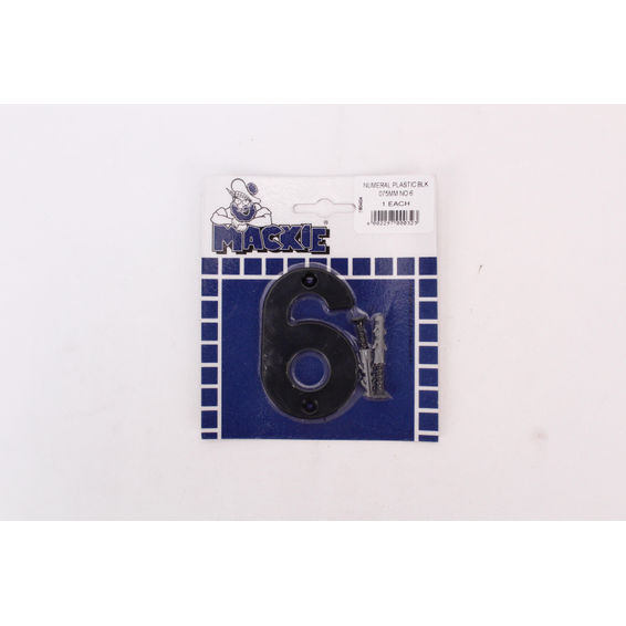 Number 6 plastic sign black mackie 75mm