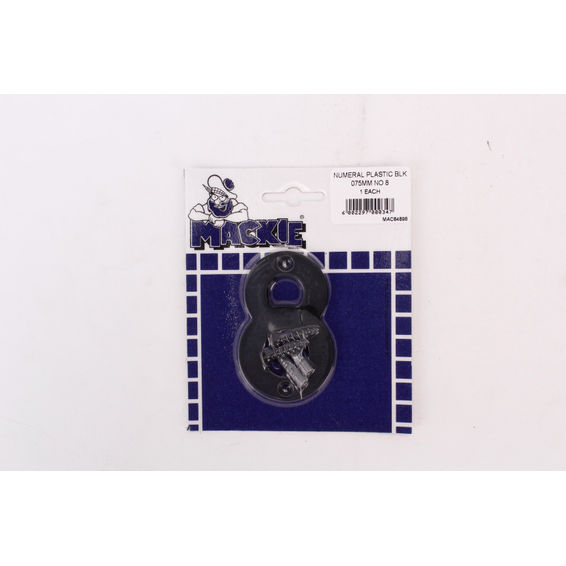 • Product Name: Number 8 Plastic Sign Black Mackie 75mm