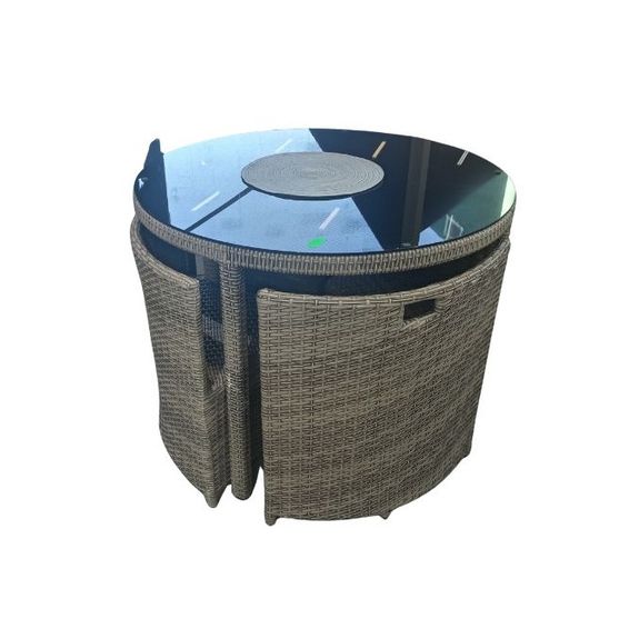 Crafted from high-quality, weather-resistant PE rattan, the set includes four comfortable chairs and a sturdy table topped with sleek tempered glass. The chairs are ergonomically designed for relaxed seating and include soft, removable cushions for added luxury.