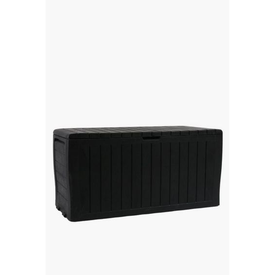 Outdoor Storage Box Black 115cm Weatherproof Plastic Chest with Wood-Look Finish