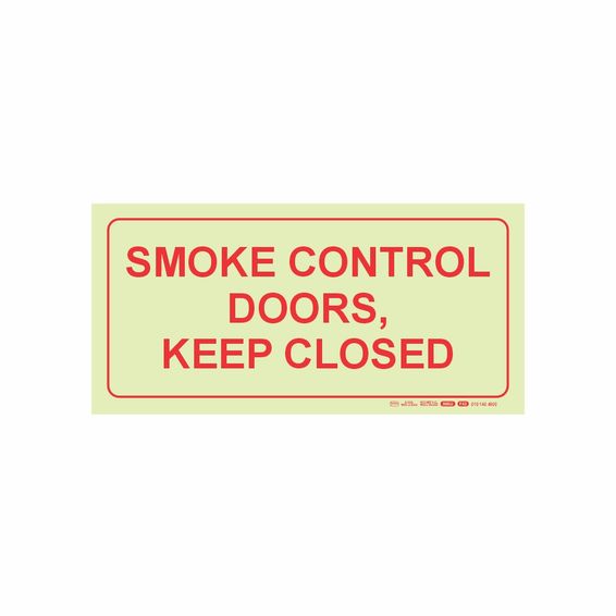 Photoluminescent 190mmSafety Sign F42 Smoke Control Doors Keep Closed