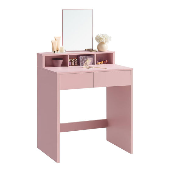 Pink Makeup Vanity Table with Large Mirror and Storage Units