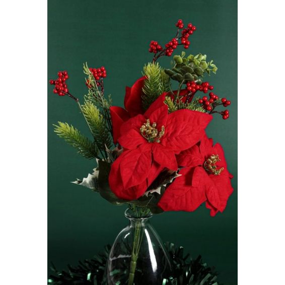 Poinsettia & Berry Bunch – 52cm Festive Holiday Floral Decoration