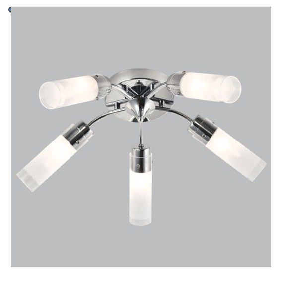 Polished Chrome Chandelier with Frosted Glass 5 x 40W SES ( Not Included ) Width: 550mm Height: 170mm Ceiling Cup: 150mm