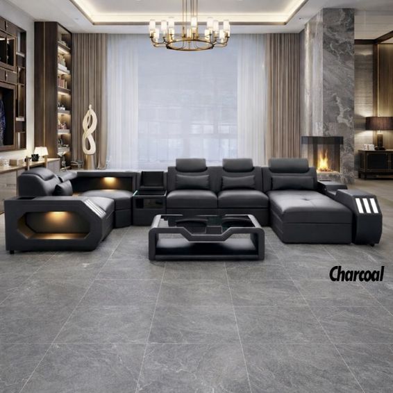 Prestige Home - Tesla U-Shape Smart Couch - Charcoal