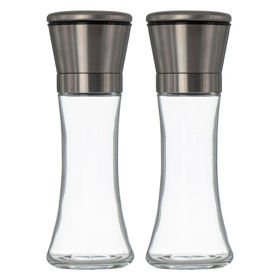 Regent salt and pepper steel and glass grinder set 2pc (65mm diax190mm)
