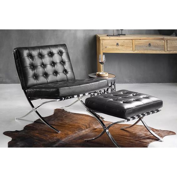 REPLICA BARCELONA LOUNGE CHAIR BLACK LEATHER STAINLESS STEEL FRAME