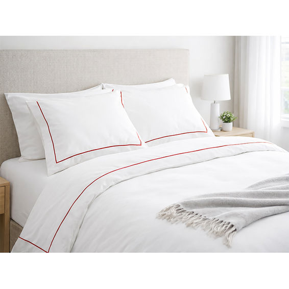 Premium Collection Soft Touch - Oxford Racing Red Satin Stitch Pillow Cover Set - Euro Continental - (1 Set)