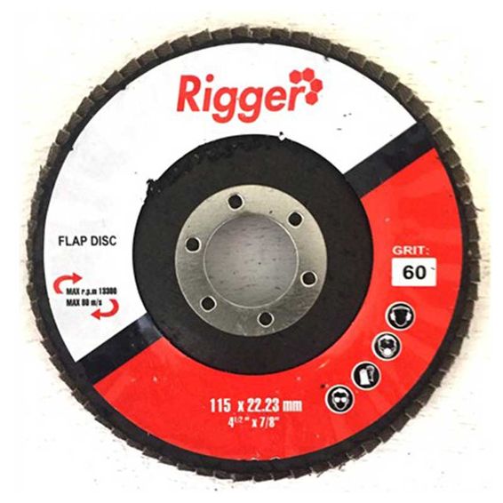 RIGGER Abrasive DIY Flap Disc 115mm x 22.23mm - 60 Grit