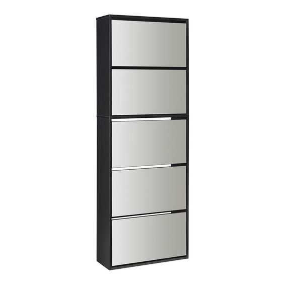 Riverstone-5 Tier Mirror Shoe Cabinet - Black - Finery